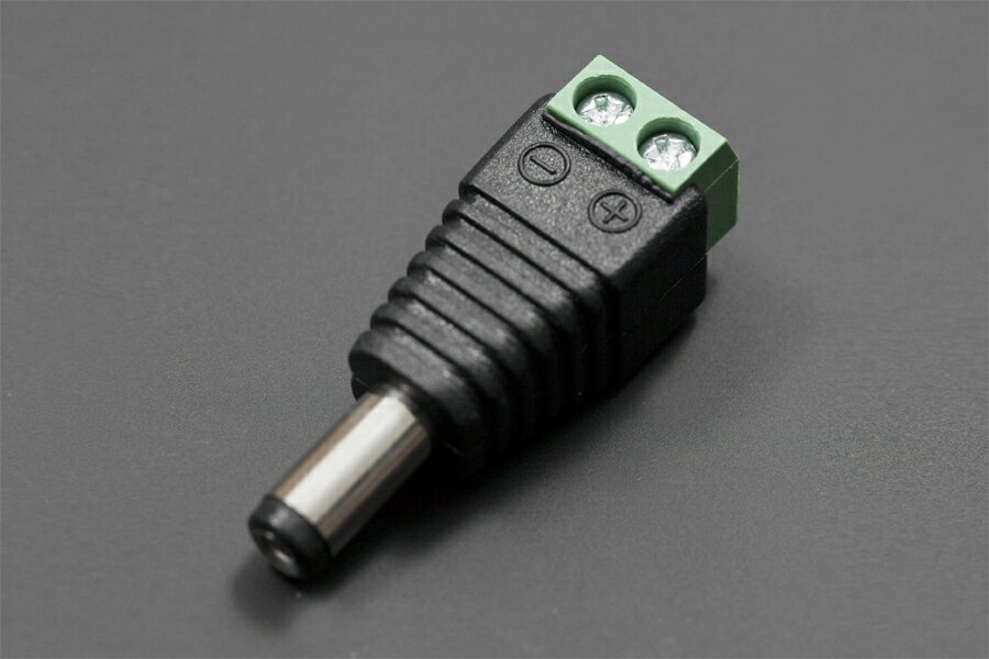 一方の端にはネジ留め式端子があり、もう一方の端には5.5x2.1mmの中心がプラスのオスバレルジャックがあります。
